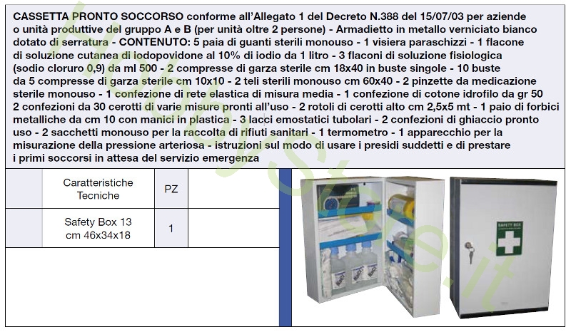 Contenuto minimo della cassetta di primo soccorso - Aesse Servizi La cassetta di Primo Soccorso deve essere tenuta presso ciascun luogo di lavoro, in posizione facilmente accessibile ed individuabile da segnaletica. In questo caso il materiale raccolto in una cassetta rigida portatile, spesso di plastica o. Cassette pronto soccorso, confronta prezzi e offerte cassette pronto. Contenuto minimo della cassetta di pronto soccorso allegato 1 CONTENUTO MINIMO DELLA CASSETTA DI PRONTO SOCCORSO. Normativa sul pronto soccorso aziendale - Cassetta primo soccorso a) cassetta di pronto soccorso, tenuta presso ciascun luogo di lavoro, contenente la dotazione minima indicata nell allegato 1, che fa parte del presente. Kit di pronto soccorso - modifica modifica testo.
